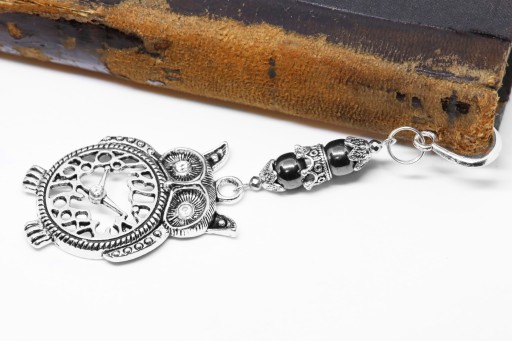 Elegancka zakładka do książki z zawieszką w kształcie sowy z dodatkiem hematytu i cyrkoni.