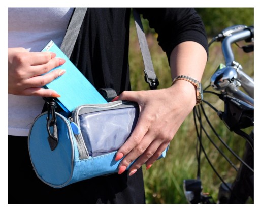 Sakwa z funkcją torebki na telefon i inne akcesoria,montowana na kierownicę, ramę, bagażnik do roweru, motocyklu lub innych pojazdów.