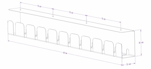 - Wymiary: 600 mm x 80 mm x 50 mm