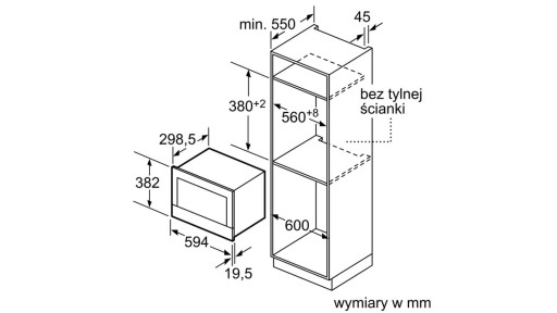 Wymiary niszy (WxSxG):362 mm-382 mmx 560 mm-568 mmx300 mm