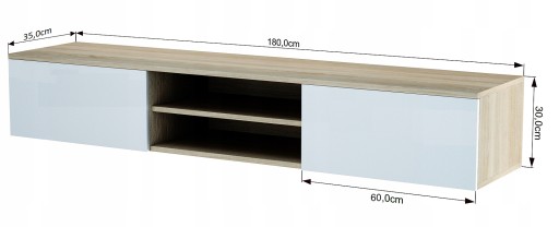 - Całkowite wymiary szafki: szerokość: 180 cm, wysokość: 30 cm, głębokość 35 cm