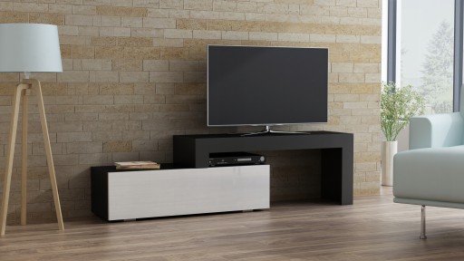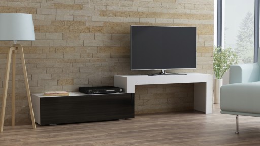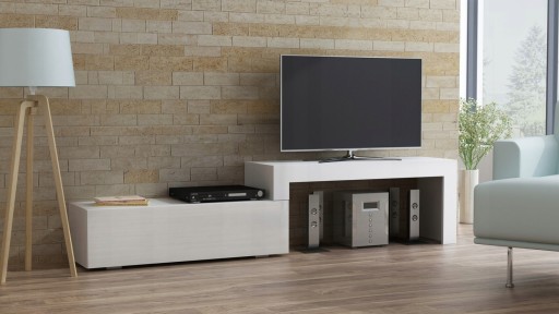 Rozsuwana szafka RTV nowoczesna szafka, która dzięki prostej i minimalistycznej formie idealnie nadaje się do każdego wnętrza.