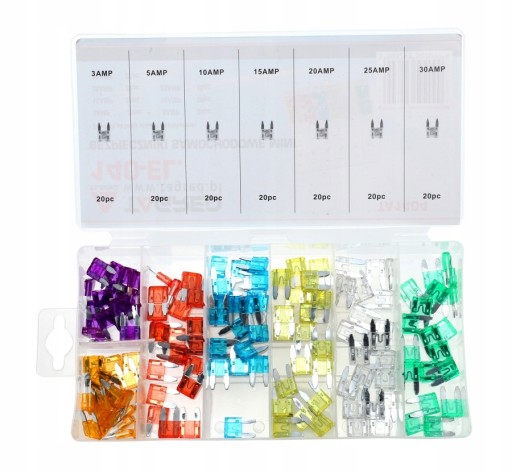 Bezpieczniki samochodowe zestaw 140 szt. mini 3A-30A