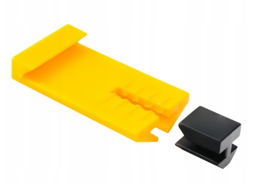 Na ścianach w miejscach na których zamierzamy umieścić listwy tynkarskie wiercimy otwory i wkładamy kołki rozporowe. Śruby, które wkręcimy do kołków poziomujemy za pomocą poziomicy lub sznurka. Na łbach śrub umieszczamy uchwyty(kolor żółty) do listwy tynkarskiej, mocujemy listwę i blokujemy zatyczką(kolor czarny)
