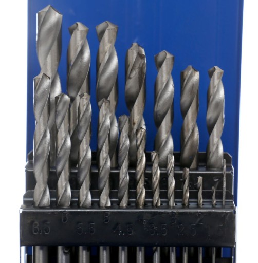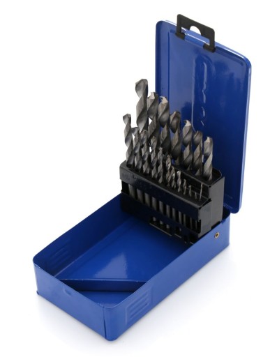 Super zestaw 19 wierteł do metalu. Wykonane z najlepszej stali szybkotnącej o symbolu HSS z uchwytem walcowym oraz wzmocnioną krawędzią tnącą.