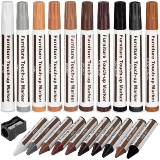 Zestaw do naprawy paneli i mebli MARKERY + WOSKI + TEMPERÓWKA * DUŻY ZESTAW 23 elementy
