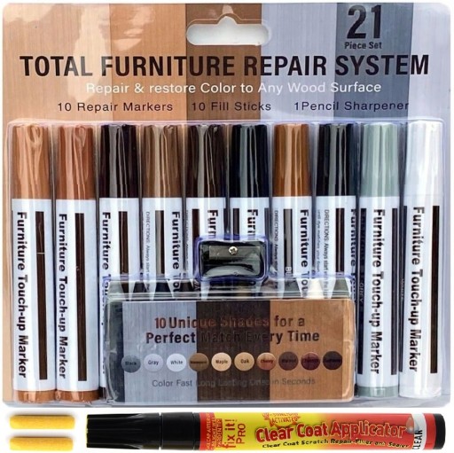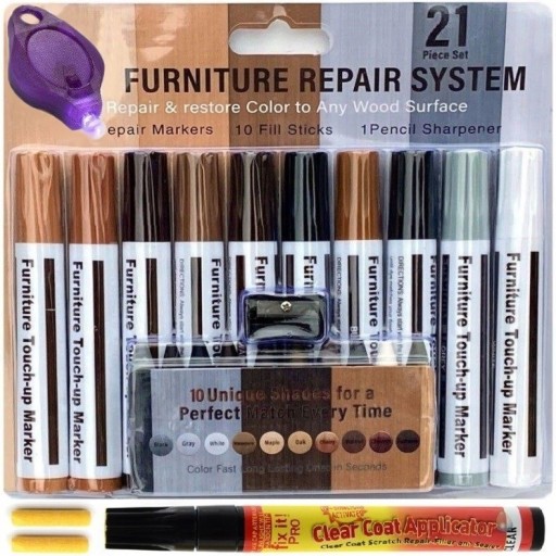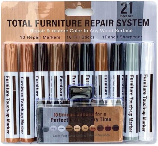 Zestaw do naprawy paneli i mebli MARKERY + WOSKI + TEMPERÓWKA * DUŻY ZESTAW 23 elementy