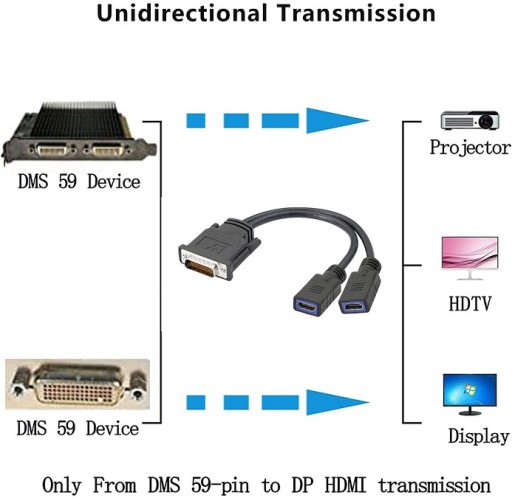 Rozdziela wyjście pinowe DMS59 karty graficznej, aby umożliwić jednoczesne korzystanie z 2 monitorów podłączonych przez HDMI