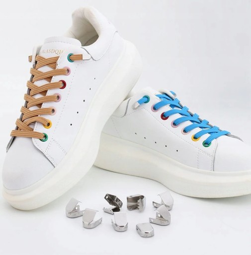 Zapasowy zestaw metalowych końcówek do elastycznych sznurowadeł do butów.