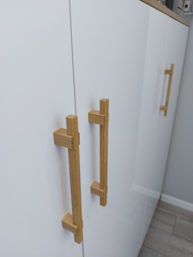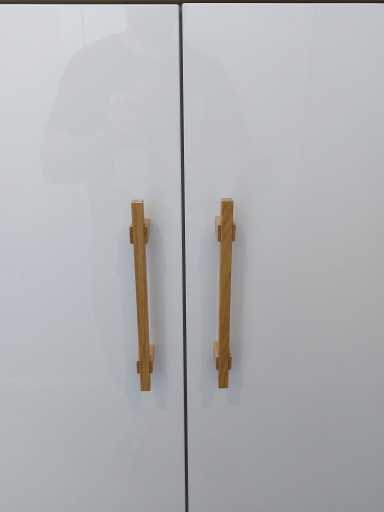 Uchwyt wykonany z litego drewna dębowego malowanego lakierem bezbarwnym.