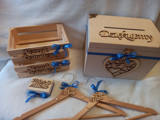 Zestaw ślubny - kolor chabrowa (ciemny niebieski ):pudełko drewniane NA KOPERTY ślubne - zamykane na kluczyk