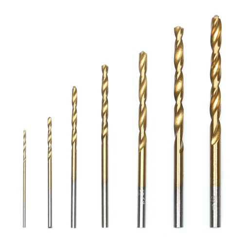 - Wiertła wykonane ze stali szybkotnącej HSS oraz pokryte azotkiem tytanu