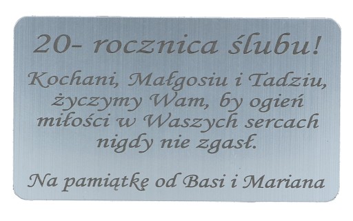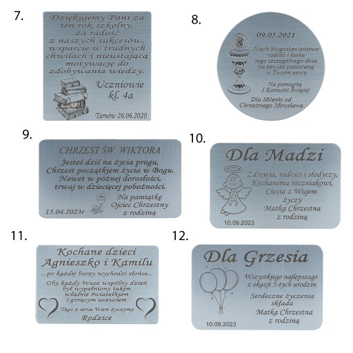 Możliwość wykonania GRAWERA na różne okazje np: Urodziny, Imieniny, Chrzest, Komunia Święta, Bierzmowanie, z Okazji Ślubu, Rocznicy, Dzień Nauczyciela lub z innych okazji...