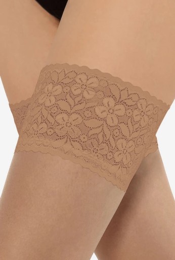 Praktyczne i delikatne, silikonowe paski stanowią gwarancję niezawodności pończoch samonośnych. Bardzo dobrze przylegają do ciała. Dzięki ich zastosowaniu materiał nie zsuwa się, ani nie marszczy. Silikonowe paski zostały zamaskowane szerokim paskiem dekoracyjnym - ze zmysłowej koronki.