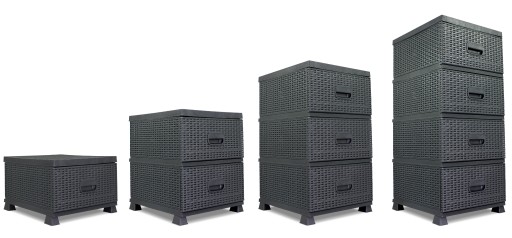 Komodę można złożyć w dowolny sposób. Można także połączyć 2 komody tworząc słupek z 8 szufladami