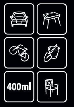- wydajność 0,8 - 1,2 mkw (w zależności od warunków otoczenia i sposobu nanoszenia)