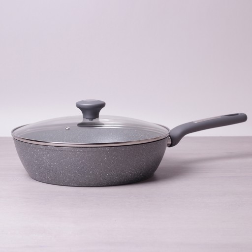Patelnia granitowa głęboka 28 cm z pokrywką szklaną INDUKCJA KAMILLE KM-4277GR