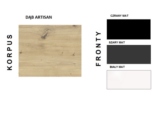 - Korpus dąb artisan mat - płyta wiórowa laminowana obustronnie o grubości 18 mm,