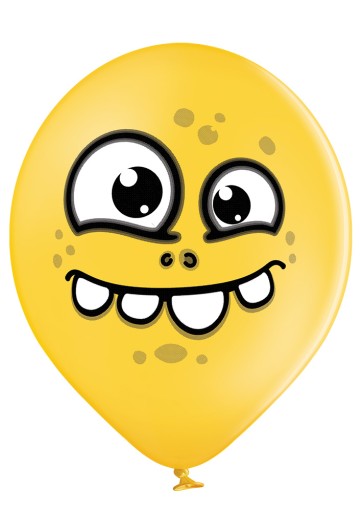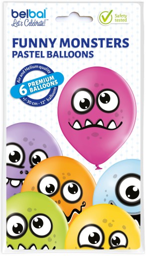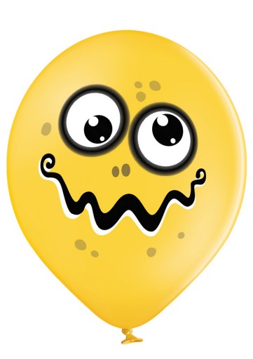 W oryginalnym opakowaniu znajduje się 6 balonów nadrukiem buziek zabawnych potworków.