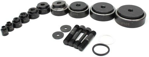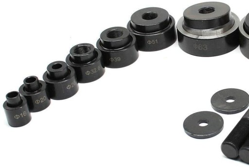 15 ton 10, 15 ton narzędzie tnące 3,5 mm, 25 mm, 10 matryce: 16 mm, 20 mm, 26,2 mm, 32,6 mm, 39 mm, 51 mm, 63 mm, 63 mm, 76 mm, 89 mm, 101 mm, miękka blacha stalowa: maksymalnie 4 mm. Płyta ze stali nierdzewnej: 2 mm.