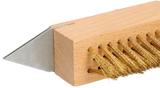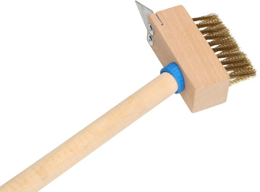 - Dodatkowo szczotka została wyposażona w trójkątny, stalowy skrobak, który pomoże Ci usuwać chwasty z ich korzeniami z trudno dostępnych miejsc między kostkami.