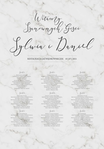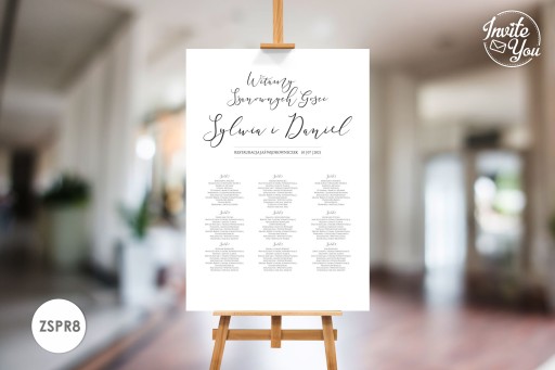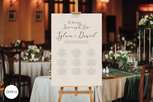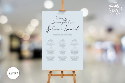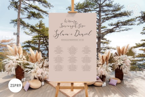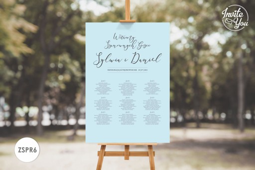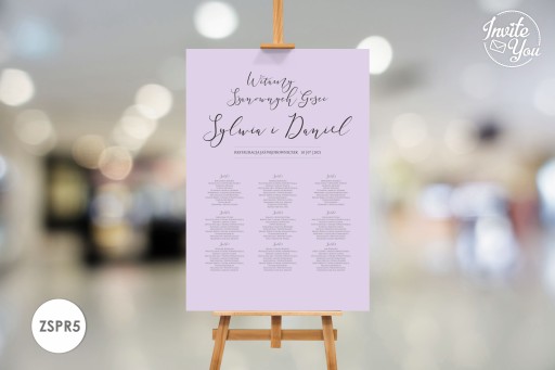 Eleganckie, kolorowe plansze / plakaty z listą gości z kolekcji Pastel Rainbow. Na planszy znajduje się rozpiska gości wraz z przypisanymi stolikami. Plansza z listą gości może być ustawiona przy wejściu do sali ułatwiając jednocześnie gościom odnalezienie swojego miejsca na sali.