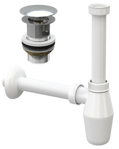 ПРОБКА CLICK CLACK + СИФОН ДЛЯ РАКОВИНЫ С ПЕРЕЛИВОМ