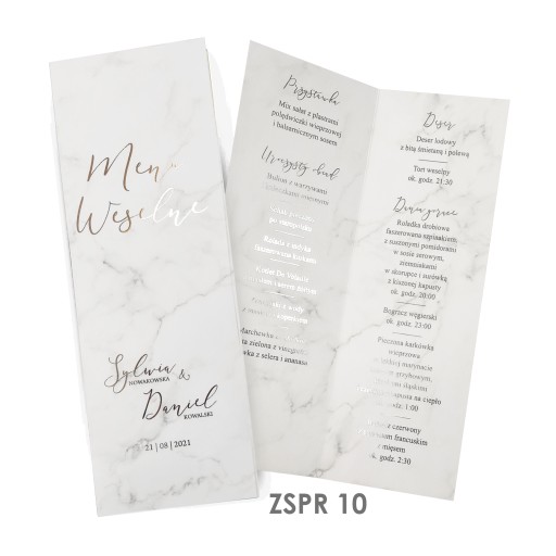 - personalizację według przesłanej listy imion nowożeńców, daty ślubu oraz serwowanych dań