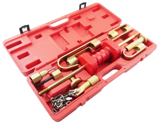☑️ Znakomitej jakości zestaw wybijaka (młotka bezwładnościowego) 5,4 kg z akcesoriami. Znajduje zastosowanie przy wyciąganiu niewielkich wgnieceń uszkodzonych elementów nadwozia pojazdów osobowych i dostawczych. Całość zapakowana w poręcznej walizce z tworzywa sztucznego. W zestawie znajduje się szereg akcesoriów typu: haki, uchwyty, końcówka z łańcuchem, końcówki do zastosowania ze spotterem.