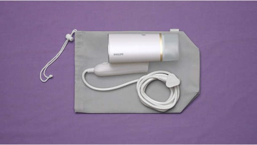 Ręczny steamer z serii 3000 Philips jest wyposażony w pokrowiec, który przydaje się do przechowywania w podróży i w domu.