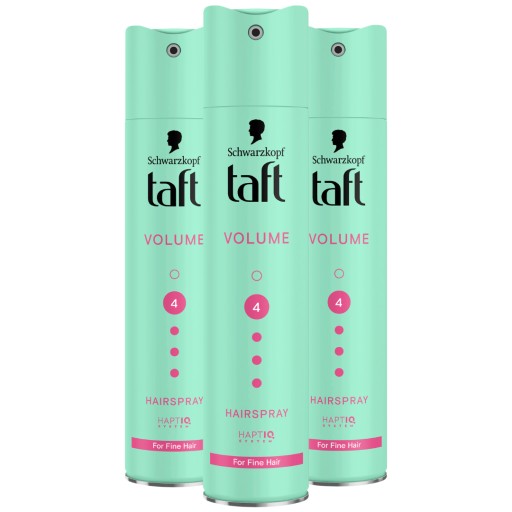 Innowacyjna formuła Schwarzkopf Taft Volume dodaje objętości i zachowuje naturalny ruch włosów. Jest odpowiedni do włosów delikatnych. Zapewnia długotrwałe utrwalenie bez efektu sklejonych włosów, a jednocześnie łatwo się wyczesuje. Pomaga chronić włosy przed uczuciem suchości i zapewnia mocne utrwalenie stylizacji nawet w trudnych warunkach pogodowych, takich jak wilgoć i wiatr. Lakier do włosów Schwarzkopf Taft posiada innowacyjny system HAPTIQ, który tworzy mikrowiązania i wzmacnia strukturę włosa.