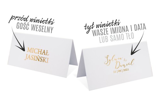 Eleganckie, złocone, niepowtarzalne i personalizowane winiety na stoły weselne w rożnych kolorach do wyboru