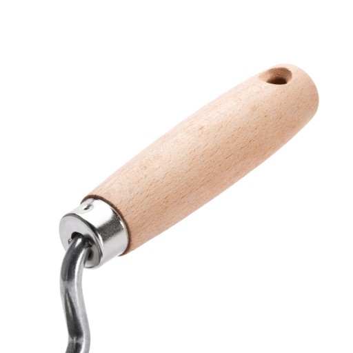 - Metalowa nakładka na rączce zabezpiecza drewno przed uszkodzeniem. Trzonek nie niszczy się i nie powstają w nim niebezpieczne zadziory.