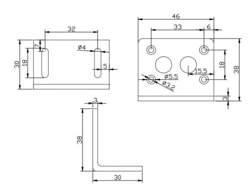 Wymiary orientacyjne jak na rysunku, grubość kątownika 3mm.