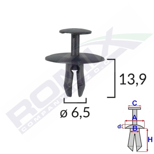 - A 21,8 B 6,5 C 11,9 D 1,5 H 13,9 w otwór ø 6,5