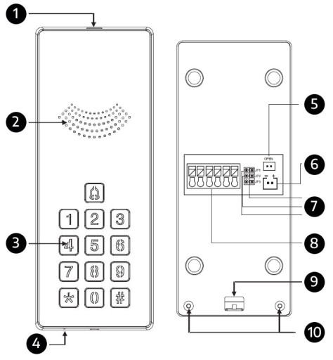 Czarna, jednolokatorska stacja bramowa domofonu przeznaczona jest do monatażu natynkowego. Wykonana ze stopu aluminium i zabezpieczona dodatkowym daszkiem gwarantuje odporność na niekorzystne warunki atmosferyczne.