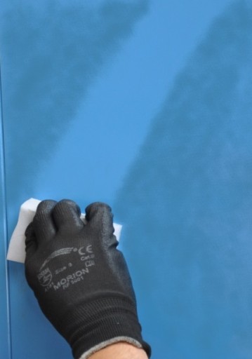 Zwilżyć pad wodą, przetrzeć zabrudzone miejsce aż do usunięcia zanieczyszczeń. W przypadku bardzo mocnych zabrudzeń działanie padów ręcznych można zwiększyć stosując dodatkowo środki chemiczne odpowiednie do danego typu zabrudzenia.