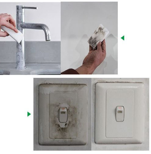 ✅ "Magiczna gąbka" czyści z łatwością przy pomocy wody, bez środków chemicznych: