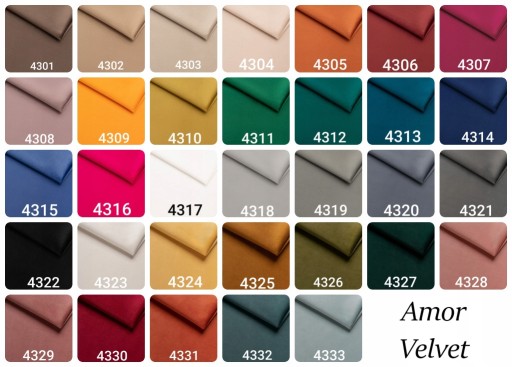 Kolekcja tkanin CASABLANCA, TRINITY, AMOR- przyjemny w dotyku welur, plamoodporny jak i bardzo wytrzymały.