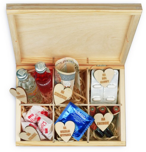 Ukazane na zdjęciach produkty (buteleczki alkoholu, prezerwatywa, słodkości itp.) nie są przedmiotem aukcji - musisz je zakupić we własnym zakresie.