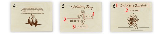 Zachęcamy do przesłania wszystkich informacji bezpośrednio po złożeniu zamówienia w polu "Dodaj wiadomość do Unique_gifts" - okienko tekstowe na dole strony pod opcjami dostawy. Wybranie tej formy komunikacji przyspiesza znacznie czas realizacji zamówienia. Możesz też oczywiście przesłać te informacje mailowo lub w wiadomości zwrotnej do maila ze szczegółami transakcji.