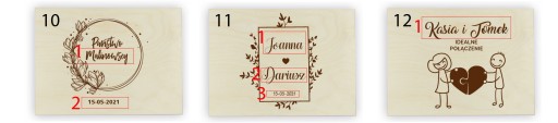 Po dokonaniu zakupu pamiętaj o przesłaniu informacji o wybranym wzorze, danych niezbędnych do personalizacji, a także numerach wybranych serduszek. Czerwoną ramką zaznaczono miejsce podlegające zmianom.