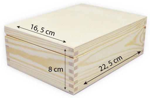 - Drewniane pudełko o wymiarach 16,5 x 22,5 x 8 cm,