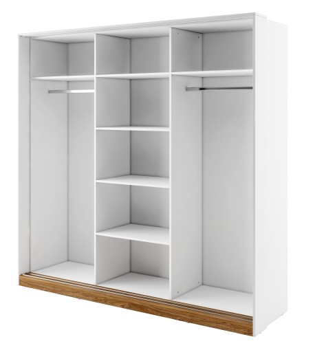 Mnogość półek i dwa drążki z pewnością pomieszczą wiele ubrań, butów i innych rzeczy. Na obszernych górnych półkach zmieszczą się pościel, walizki lub po prostu mniej używane rzeczy.
