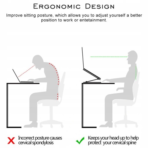 Ważnym czynnikiem ergonomii pracy przy komputerze jest ustawienie monitora, niestety laptopy nie posiadają takiej możliwości przez co w trakcie pracy jesteśmy narażeni na ciągłe garbienie się. Co może powodować bóle kręgosłupa w odcinku szyjnym. Dzięki zastosowaniu podstawki pod laptopa Nillkin ProDesk nasza praca stanie się bardziej komfortowa.