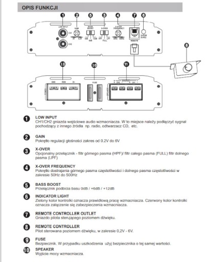 - Zdalne sterowane basem: 0,2 V ~ + 6 V