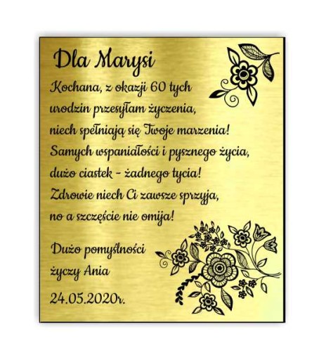 -wykonana techniką grawerowania laserowego z laminatu w kolorze złotym lub srebrnym