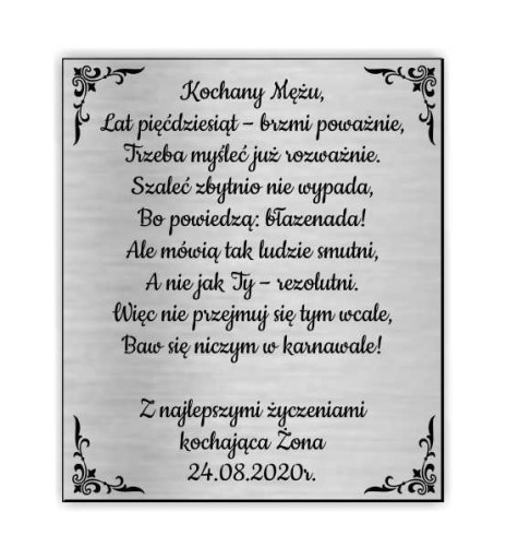 Może stanowić wyjątkowy personalizowany prezent czy grawerowaną wklejkę, np. do książki, albumu.