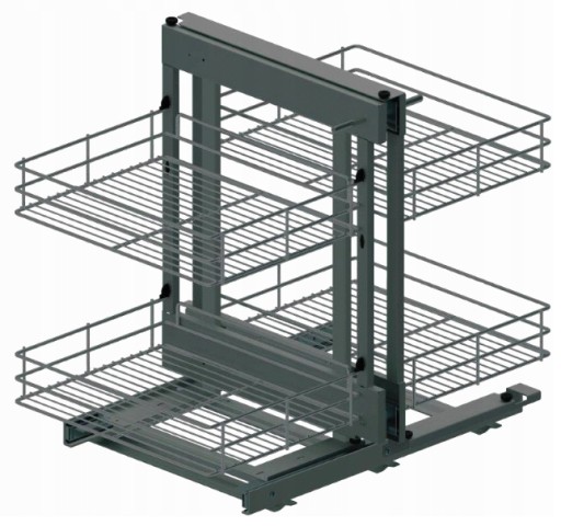 w skład zestawu wchodzi stelaż, 4 sztuki koszy i system jezdny REJS z miękkim dociągiem