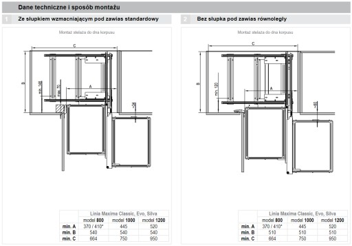 możliwość regulacji wysokości zawieszenia koszy zwiększająca elastyczność wykorzystania produktu